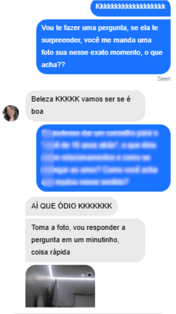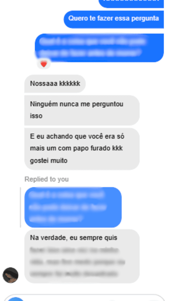 Suas mensagens passam de conversas rasas pra conversas que fazem ela rir, refletir, imaginar e desejar.